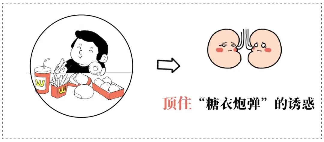 这些习惯在无形中让大家摄入了过多的糖分。血液持续高血糖状态就像浸泡肾脏的糖水,肾小球滤过屏障加速受损,出现蛋白尿。