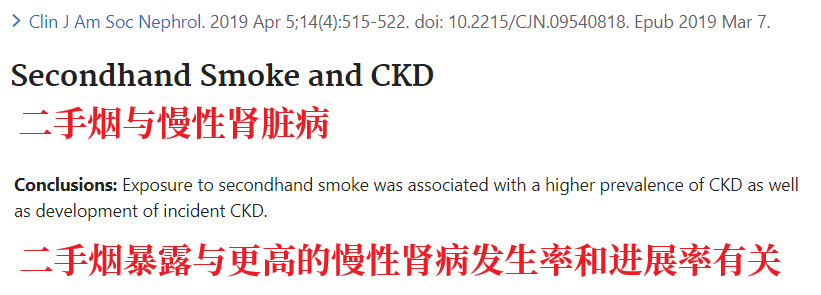 即使自己不吸烟,长期暴露于二手烟环境也会增加肾病的发生率。