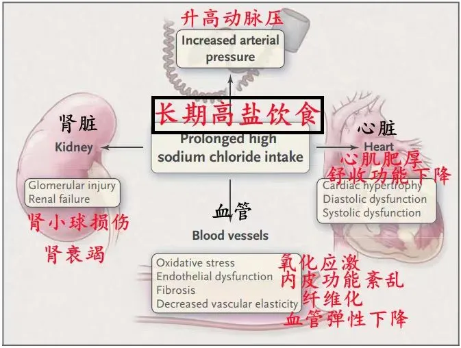 长期高盐饮食激活肾素-血管紧张素系统,导致血压升高和肾小球高滤过,让尿蛋白、血压计上的数值偷偷攀升。