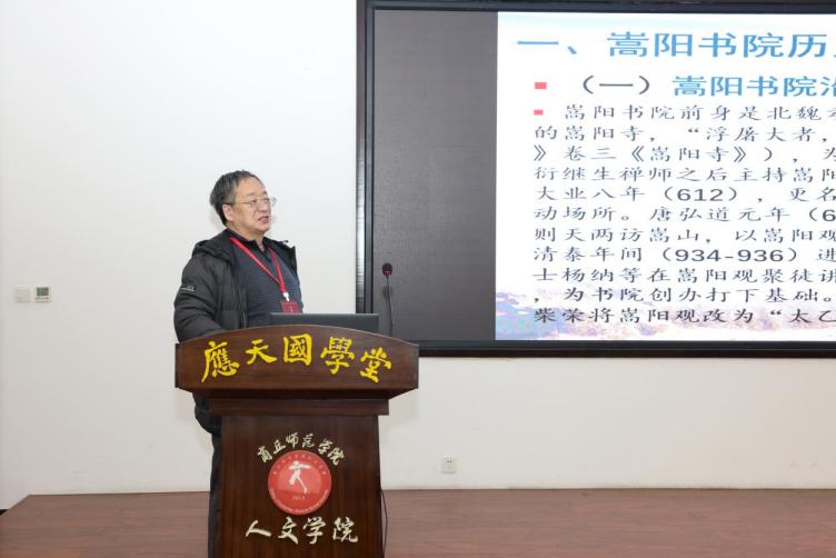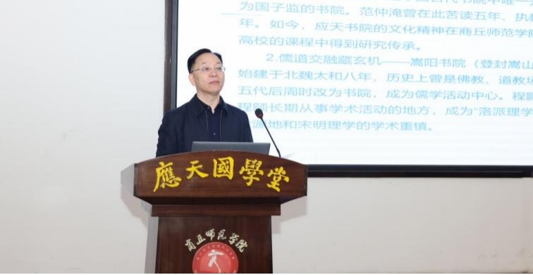 随后,九江学院文学院吴国富、郑州大学考古与文化遗产学院戴庞海、嵩阳书院宫嵩涛、南通大学文学院王树林、信阳师范大学历史文化学院叶宗宝等学者先后作主题报告,内容涵盖书院复兴与现代转化、书院与高校融合发展、宋代书院教育思想的当代启示、河南书院发展路径、应天书院文献整理以及书院传统与师范教育融合等多个维度。