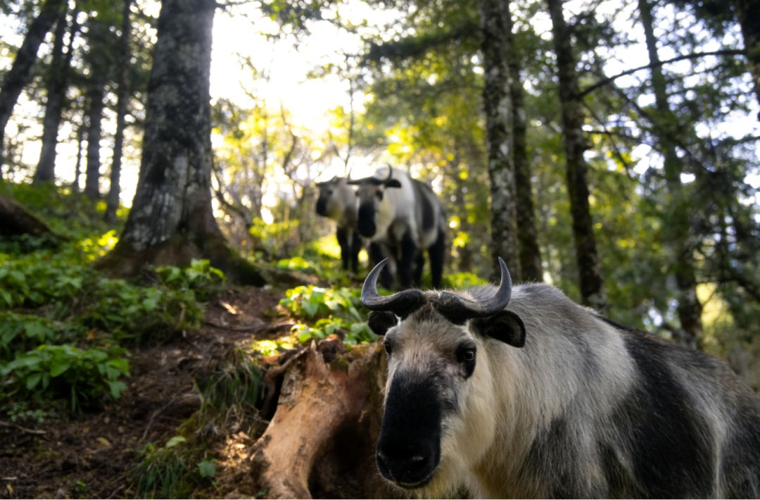 羚牛成群跋涉过苍翠的山脊……