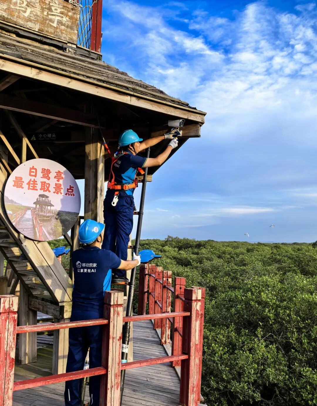 中国移动浙江公司在此建设湿地保护中心智慧管理平台,通过AI鸟类识别系统24小时不间断监测,精准识别鸟类种类、统计种群数量并分析行为轨迹,现已识别鸟类超100种,较同期人工监测多出50种,实现了湿地保护从“人防”到“技防”的智慧升级。