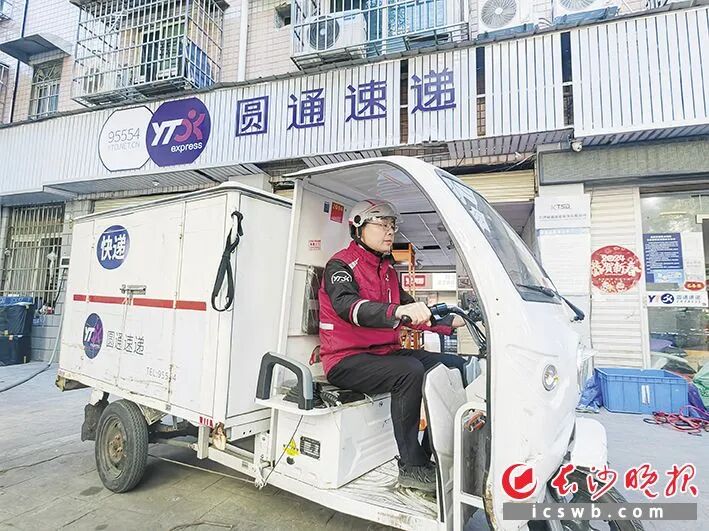 马石光正在配送快递。长沙晚报全媒体记者 刘捷萍 摄