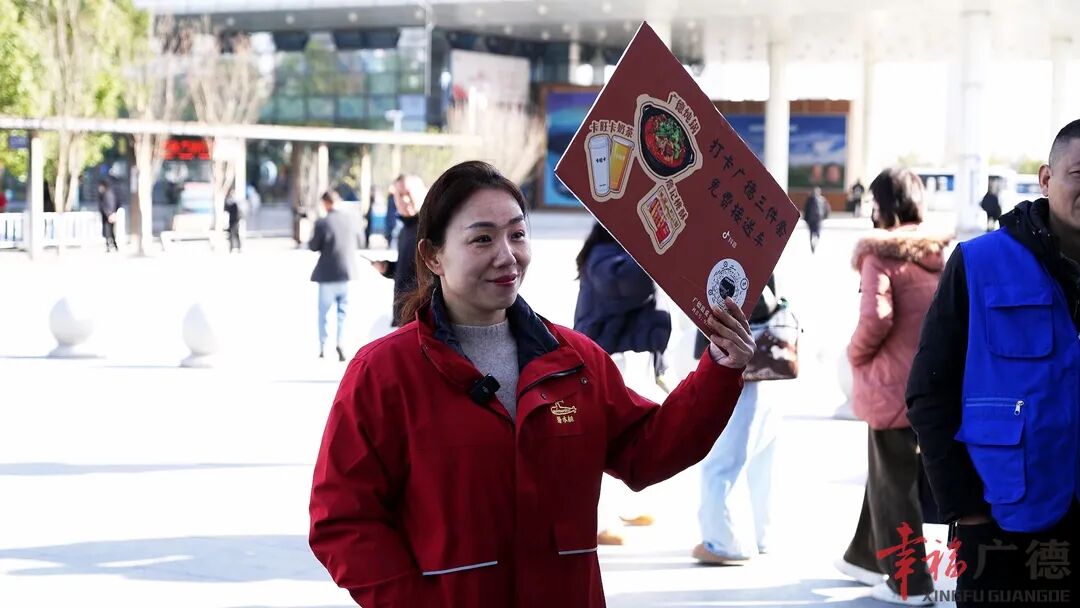 清晨八点,尽管寒风凛冽,但在广德南站出站口,高举“免费接送”宣传牌的市民,成为冬日里一道温暖的风景线。