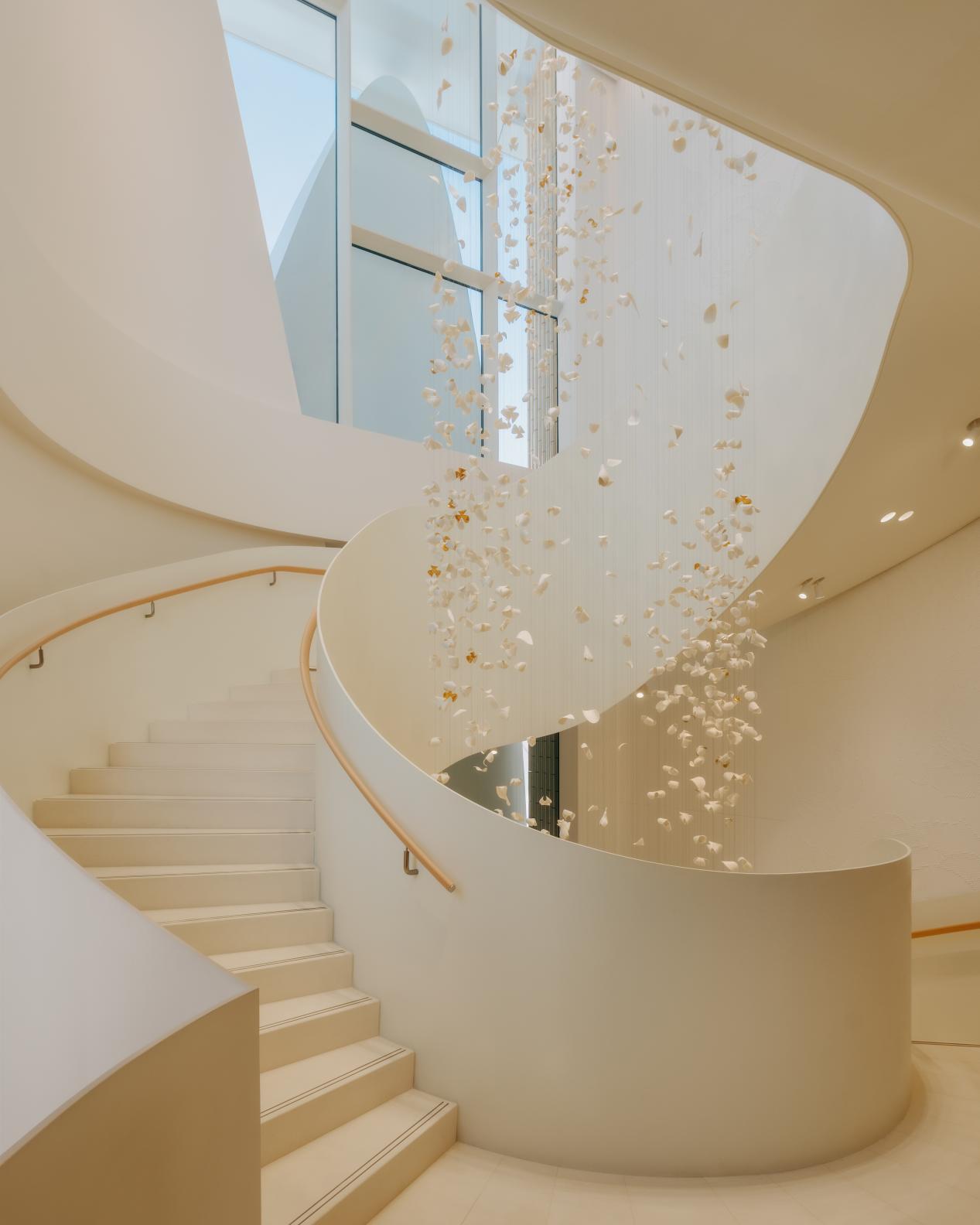 作为于二〇一五年在首尔,以及二〇二四年在日内瓦先后落成的迪奥之家续章,北京迪奥之家亦由国际著名建筑大师——克里斯蒂安·德·包赞巴克(Christian de Portzamparc)倾力设计,他贯以极具视觉冲击力的风格享誉全球。本次,全新迪奥之家被打造成一座如雕塑般的建筑杰作:外立面采用流畅线条勾勒出如花瓣般的尖拱造型,宛如克里斯汀·迪奥(Christian Dior)裁剪高级订制礼服时,流动的线条定格在空中。墙体则采用手工玻璃砖打造,以金色呼应中国传统文化中的尊贵象征。这座建筑不仅是精湛技艺的体现,更是迪奥优雅美学与现代设计语言的完美融合。那颗一直引领品牌的幸运之星闪耀于建筑顶端,为这座新地标注入隽永光辉。