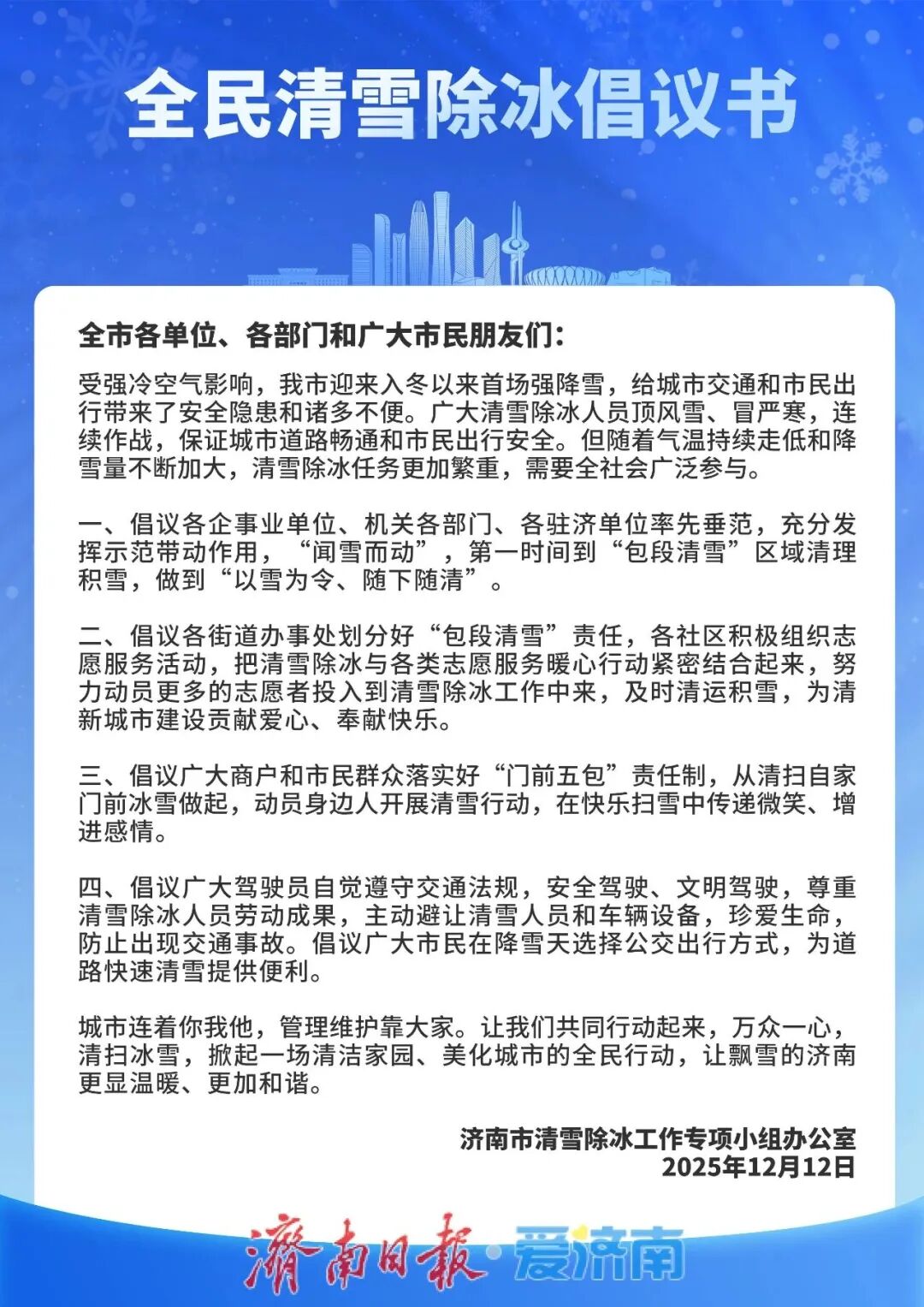 原标题:《全民清雪除冰倡议书》