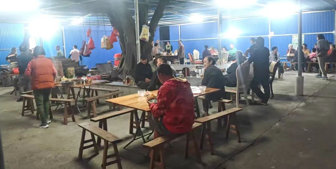 食堂没有固定的“管理员”或“炊事班”,运营模式充满了乡村特有的质朴与灵活。资金来源于村民随心的捐赠——“谁家有喜事、开心了,就捐个‘餐费’”,由在场村民轮流记账,每一笔开支明细都发在微信群里,公开透明。食材除了用公共基金购买,更多时候是“今天我出几个鸡蛋”“我家地里还有些菜”“我带块腊肉来”这样的爱心众筹。吃饭人数少则五六人,多则二三十人,随到随吃;饭若不够,便下点面条,从不计较谁付出多、谁吃得少。