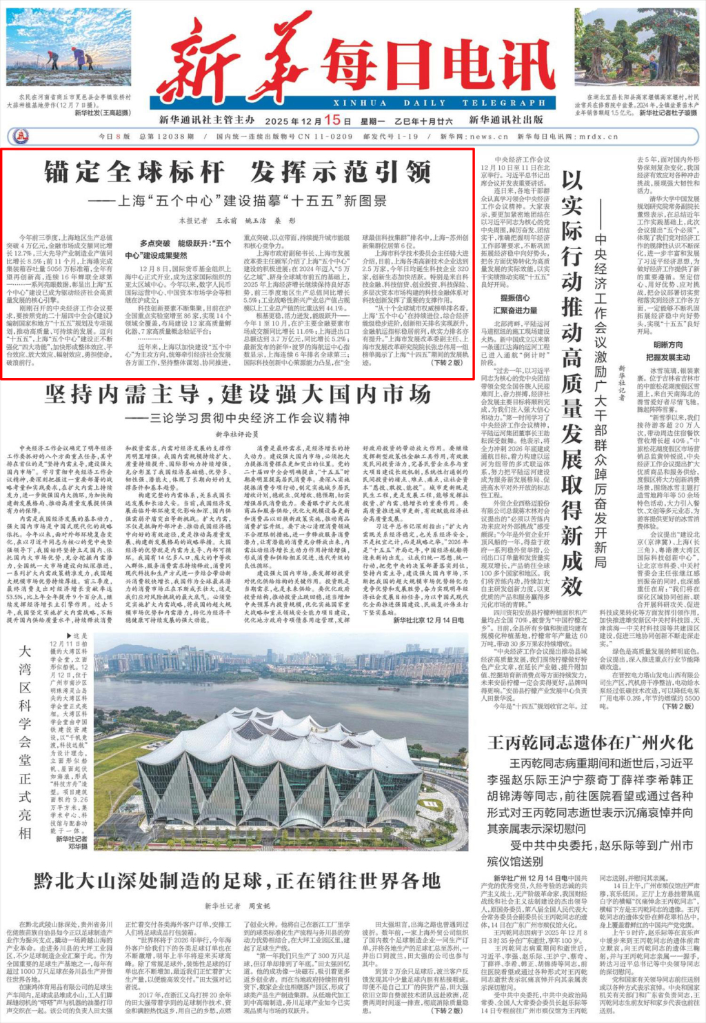 央媒头版头条聚焦上海“五个中心”建设:锚定全球标杆,发挥示范引领
