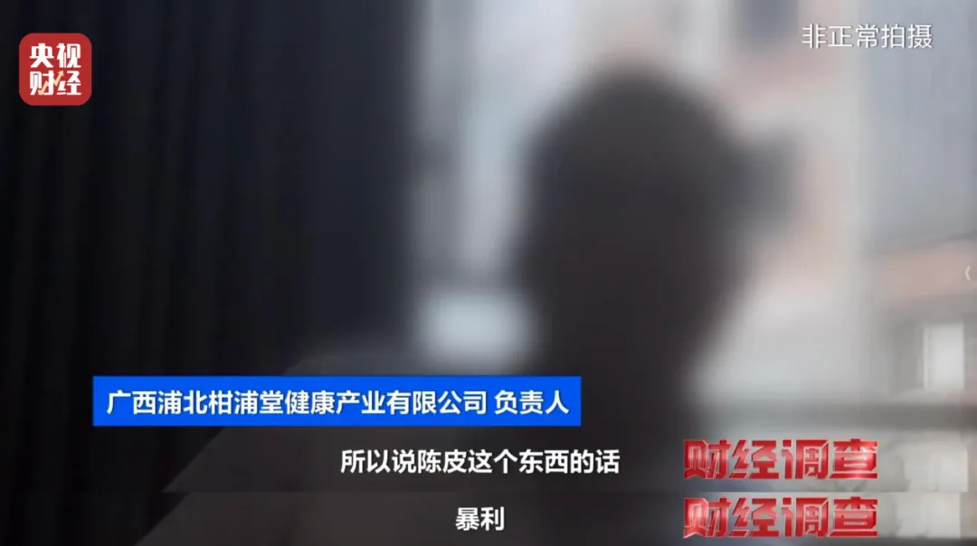 浦北自然陈化五年陈皮批发价每斤150元至200元,企业造假“工艺皮”成本仅70元左右,高额利润促使更多商家放弃自然陈化、铤而走险。