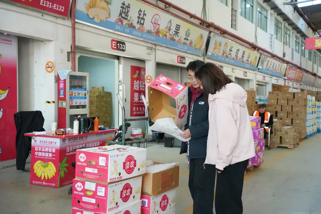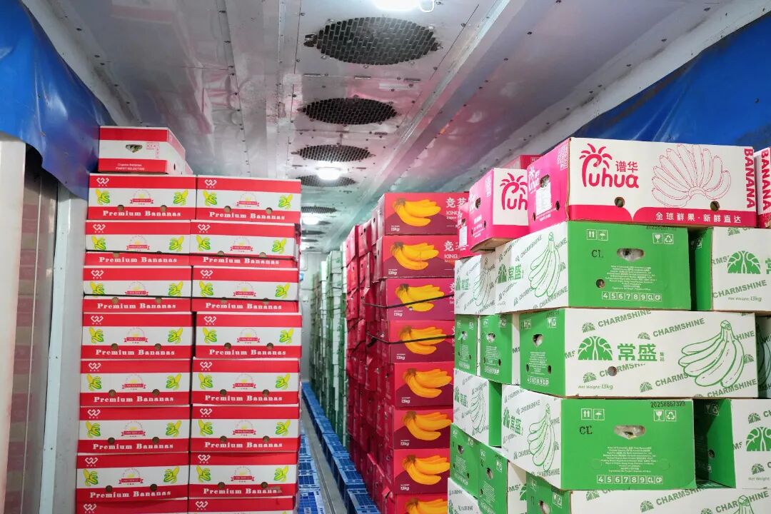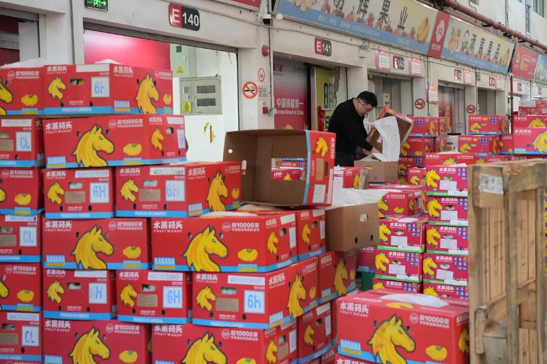 商户的反馈也印证了交易中心的运营成效。佳农档口负责人赵则慧告诉记者:“我们是10月28日跟着西郊国际的统一安排搬到这里的。最大的感受就是,这里的客户特别集中,而且采购目的性很强,就是专门冲着买香蕉来的。”记者在现场注意到,佳农档口的仓库内已空无一物,仅剩外侧区域堆叠着十几箱待售香蕉。“我们的货品都是每日新鲜到货,今天运了500多箱来,每箱都是27斤的规格。”赵则慧介绍,自入驻以来,档口的销售势头一直很旺,每日货品基本所剩无几,最多也就剩余三五十箱,热销程度可见一斑。
