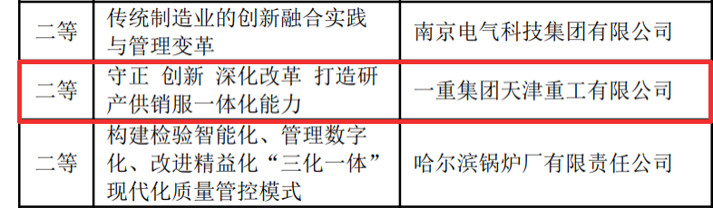原标题:《中国一重3项管理创新成果获行业权威表彰》