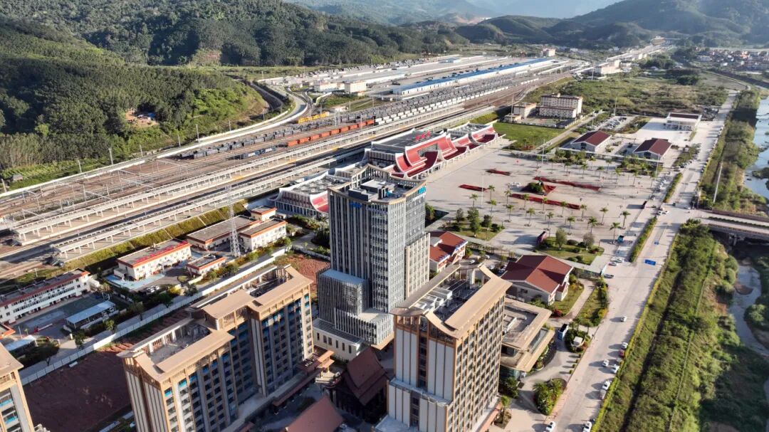 鸟瞰磨憨铁路口岸。赵伟/摄