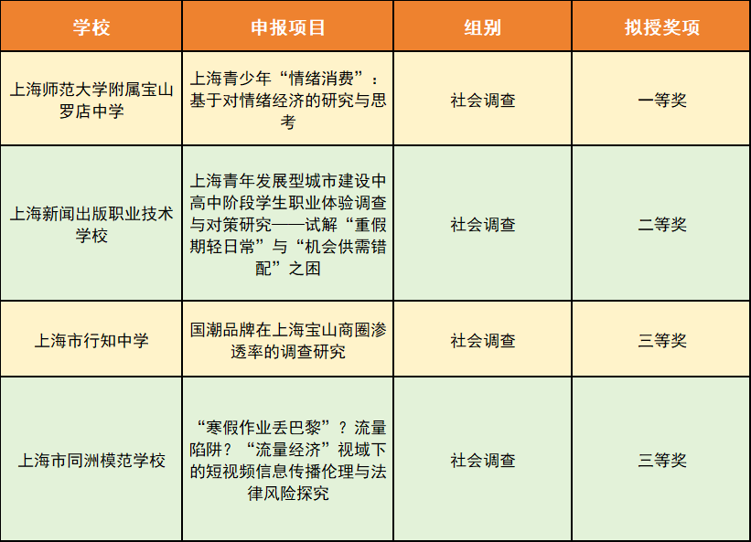 宝山学子聚焦社会热点,深入调研实践,共获4项奖项,其中: