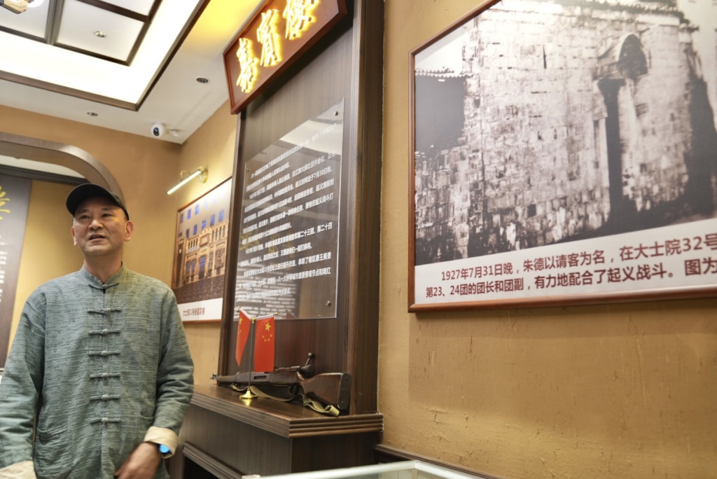 在店内墙上,张贴着电影《建军大业》中朱德设宴桥段的剧照海报,来就餐的客人能直观感受那段风云际会的历史场景。他说,只要大家想听,他和店员都很乐意把这段往事讲给大家听,“能把革命先辈的精神与智慧讲给大家,对我而言既是一份荣幸,也是一种自豪。”