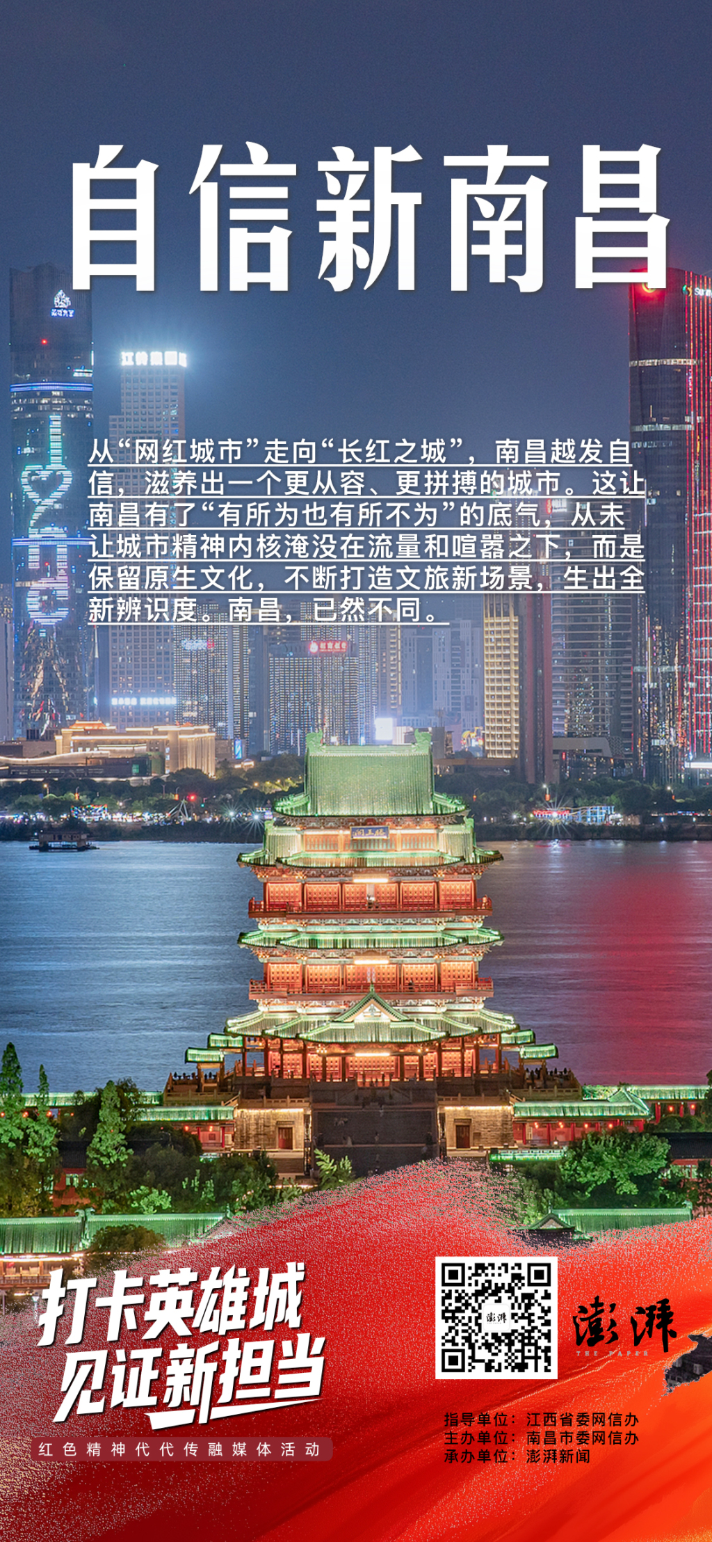 “自信,是英雄城南昌的应有气概。”早在2021年12月,南昌市委机关报《南昌日报》就在《南昌人要自信》的社论中,从历史底蕴、文化积淀到区域禀赋,系统论述了这座城市的过往辉煌与未来可能,一度引发社会广泛共鸣。