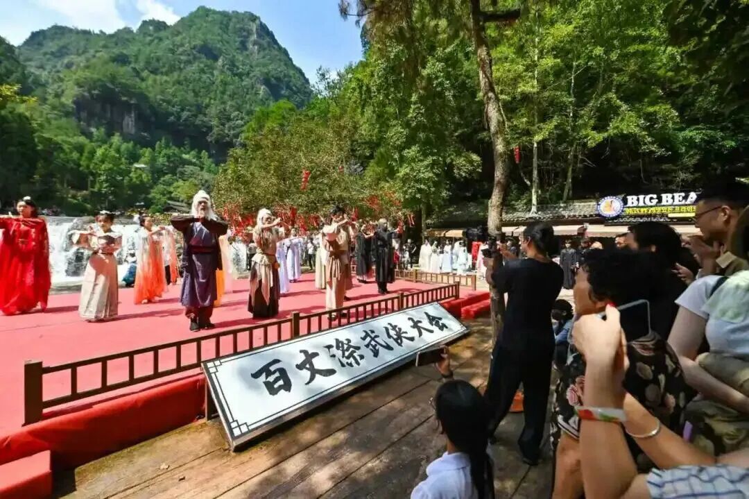 酒香也怕巷子深,营销借水让百丈漈的美名传遍四方。文成联合高校、服务商及网红达人,在抖音等平台策划热门话题,全网播放量超300亿,年增69.3%。2025年“武侠大会”主题营销吸引70万游客,将网络声量转化为客流量,入选省文旅“爆款”培育名单。