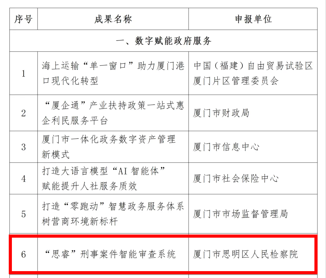 “思睿”刑事案件智能审查系统是厦门市思明区检察院依托全国检察工作网和福建省政法协同平台自主研发的“AI检察官助理”。