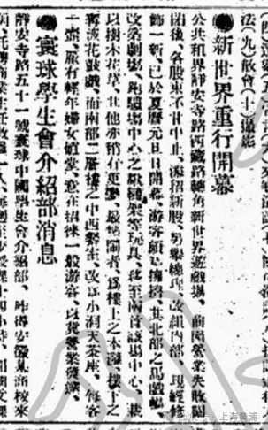 《申报》介绍新世界娱乐项目的广告