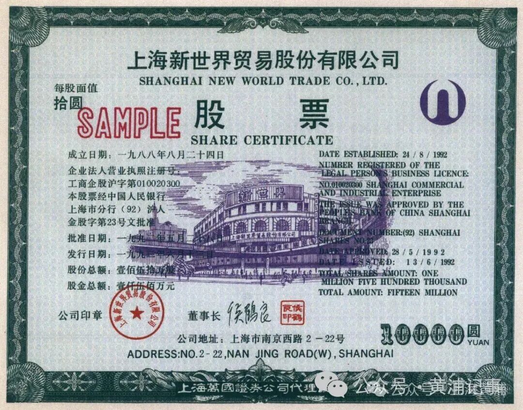 新世界股票样张(来源:新世界股份)