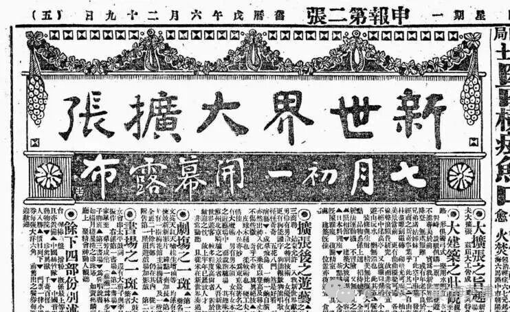 1918年《申报》新世界扩张后开幕报道