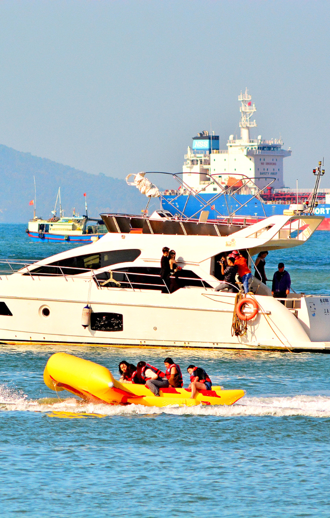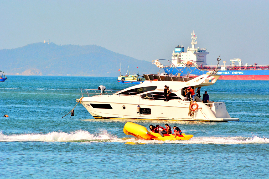镜头三:12月18日封关首日,冬日暖阳下的三亚湾,巨型货轮、游艇、橡皮艇同框,相映成趣。