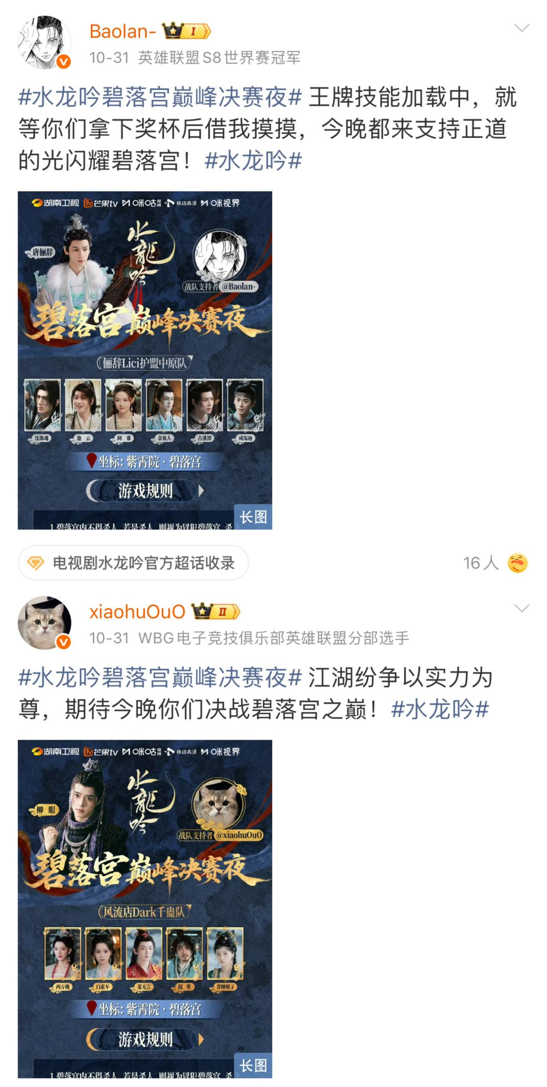 《水龙吟》剧集热播期间,英雄联盟明星选手宝蓝、小虎等人,以MOBA游戏术语趣味解读“碧落宫副本”,将权谋布局类比为“分带偷塔”,心眼子比拼堪比“技能冷却计算”,迅速在电竞玩家社群中形成热议。这并非简单的商业联动,而是角色魅力穿透圈层壁垒后引发的自发式文化共鸣,成功将游戏用户的注意力“引流”回IP本体,验证了火爆角色作为社交货币的穿透力。