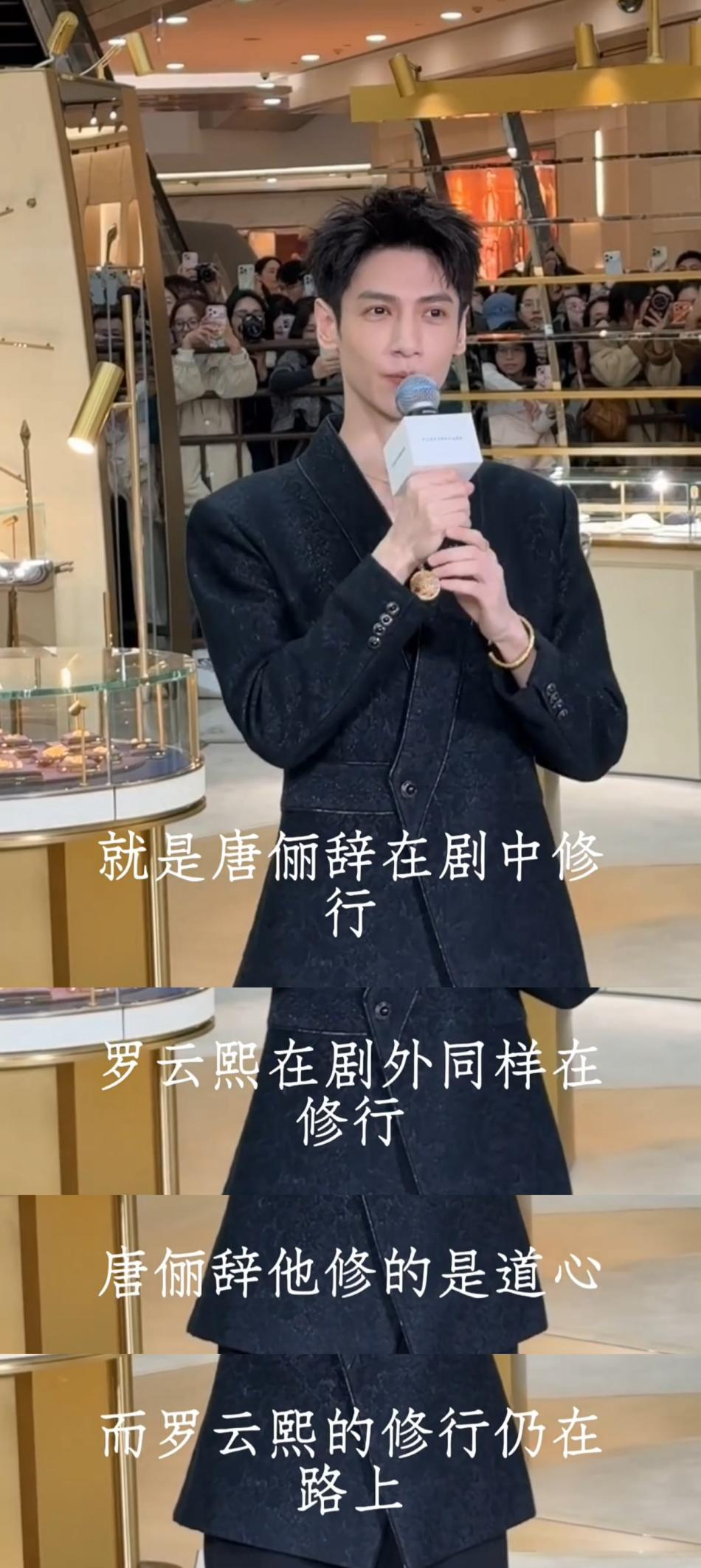 在担任Forevermark永恒印记臻雅代言人的线下活动里,罗云熙表示“唐俪辞在剧中修行,修的是道心,而罗云熙的修行仍在路上”,引发深度共鸣。同款珠宝系列被抢购,部分产品上线即售罄,从咖啡联名到支付宝皮肤,可以说《水龙吟》品牌联名实现衣食住行全场景覆盖,罗云熙作为链接IP与消费市场的“信任背书”功不可没。