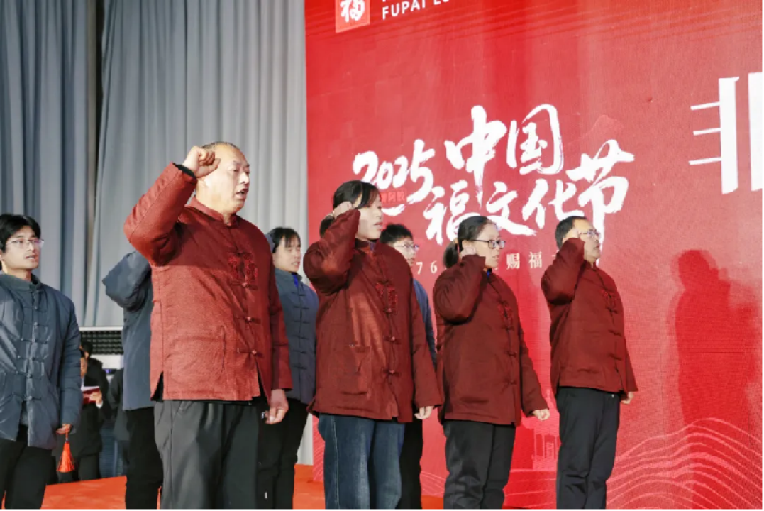 现场,东阿镇福牌阿胶非遗技艺传承人2025拜师礼在庄重而热烈的气氛中举行。新纳弟子向国家级非物质文化遗产传承人杨福安董事长率领的非遗大师团队行拜师礼、呈拜师贴,并郑重立下对非遗技艺创新传承的铮铮誓言:牢记“厚德载福”祖训,以质量求生存,以信誉求突破,品质铸就辉煌,创新推动发展,用匠心智造最卓越产品;证师、保师、九位授业师傅共同用装有阿井水、九泉之水、浪溪河水的阴阳水浇注东阿镇福牌阿胶制作技艺传承人族谱,共同揭幕十六代师徒名榜。