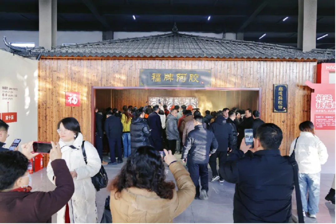 现场嘉宾在御胶坊开启了一场沉浸式的寻根溯源之旅,从企业历史沿革馆的百年沧桑,到圣旨馆、御福馆的御用贡胶荣耀,再到巴拿马金奖馆的民族品牌世界时刻,在非遗传承馆和非遗技艺展览馆感受国家级非遗“东阿镇福牌阿胶制作技艺”的匠心传承,于福字拓片馆体验独特的福文化,在红色阿胶馆了解其支援革命的红色记忆,在陈胶馆鉴赏“胶中黄金”的珍贵品质,亲身感受了其深厚的历史文化积淀和非物质文化遗产价值。