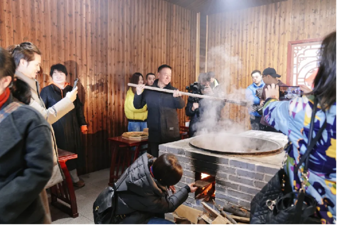 非遗传承人将九泉之水、浪溪河水和古阿井圣水融入“阴阳缸”内,并将福火从神农广场传递,途经福禄寿喜财五神像-黄帝及其女儿炼丹像-管仲井园-李世民园-丘处机园-医者大道-1915巴拿马广场-阿井公园-非遗公园,抵达阿胶数字非遗生产中心,通过AI智能管理系统正式拉开了2025冬至典藏胶和九五贡胶炼制的帷幕,2024年冬至典藏胶和九五贡胶开箱预售剪彩仪式也同步开启。