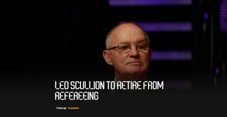 12月22日,WST官方宣布,斯诺克资深裁判利奥·斯库利恩退役,斯库利恩今年67岁,曾执法斯诺克世锦赛决赛,2014年罹患肺癌,2016年战胜病魔回归。