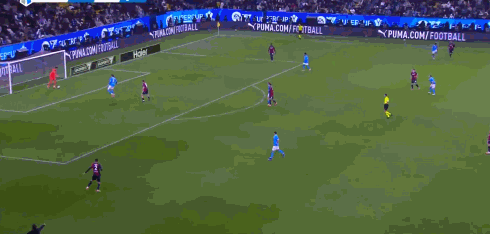 第39分钟,那不勒斯右路进攻,内雷斯右肋位置持球虚晃内切后直接起脚打门轰出世界波,皮球直入远角门将鞭长莫及,那不勒斯1比0领先。