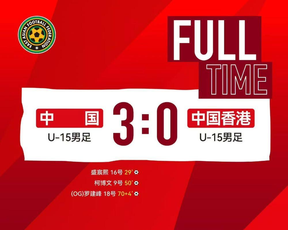 2025东亚足联U15锦标赛22日在福建漳州进行最后一轮比赛,A组的中国U15男足队3比0战胜中国香港队,以一胜一平一负的战绩结束本届赛事。
