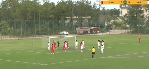 伤停补时阶段,中国队利用角球直接攻门,中国香港队门将罗建峰扑救脱手,球掉进球门。中国队3比0锁定胜局。