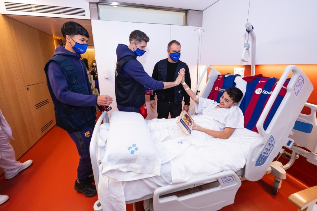 近日,巴塞罗那足球俱乐部男足一线队球员探访了巴塞罗那地区的几家儿童医院,这是巴萨基金会每年举办的公益活动的一部分。