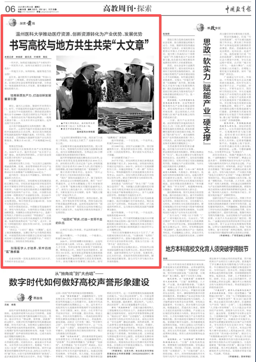 原标题:《高校如何与地方“双向奔赴”?《中国教育报》报道温医大答案》