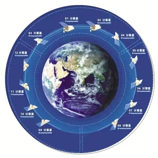 之江实验室“三体计算星座”12颗计算卫星在轨示意图。