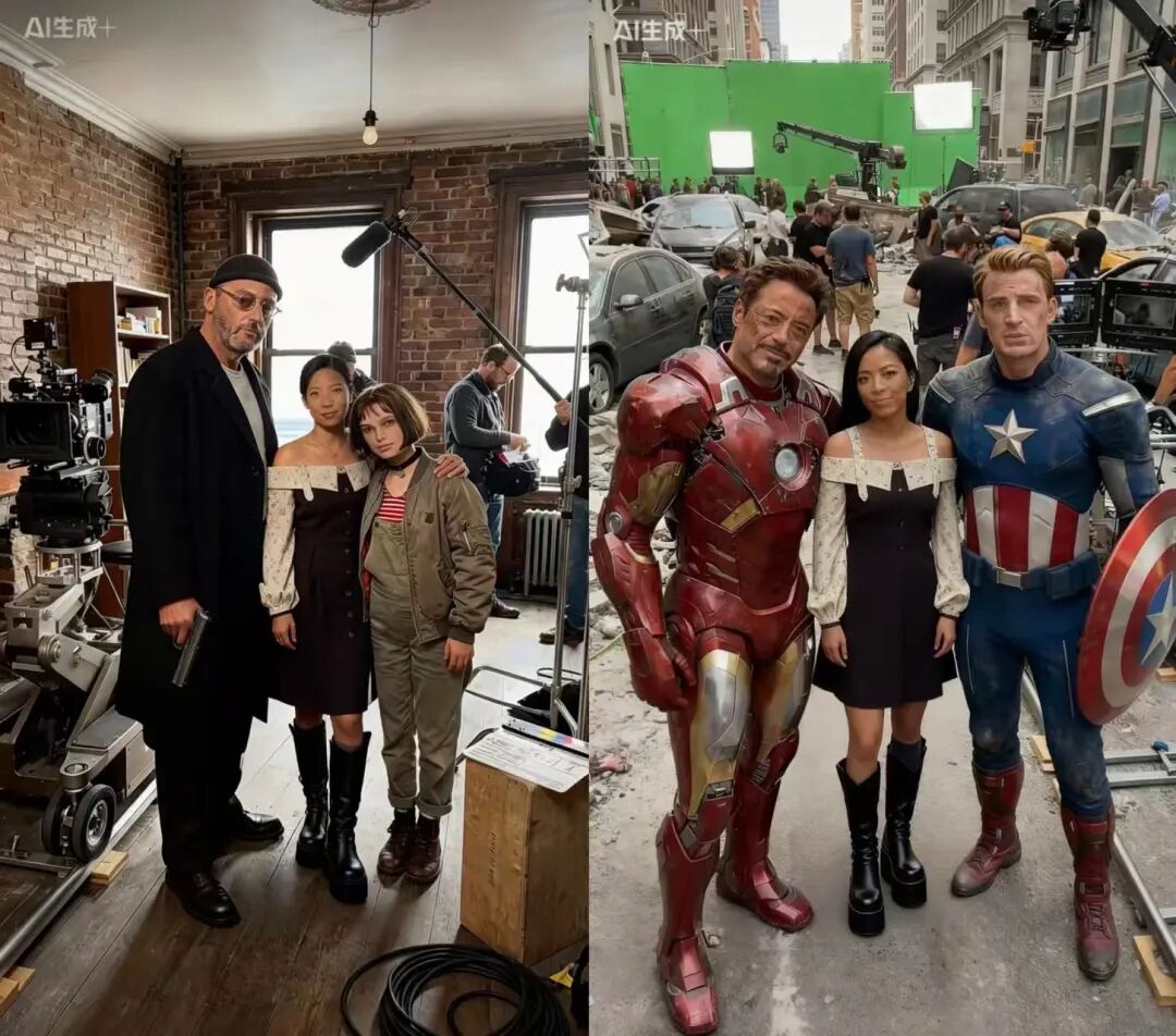 这个年底,“好莱坞片场探班”AI视频突然火遍全世界。每一个会用AI的人,都能穿梭在各个大片拍摄现场,和喜欢的影视角色合影。