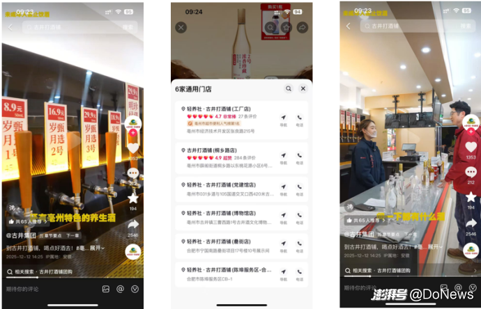 而随着抖音团购在下沉市场的高渗透,带动大量烟酒店、夫妻店布局短视频+直播卖酒,通过“线上引流-到店核销”的闭环运营,实现线上流量与线下实体的深度联动。