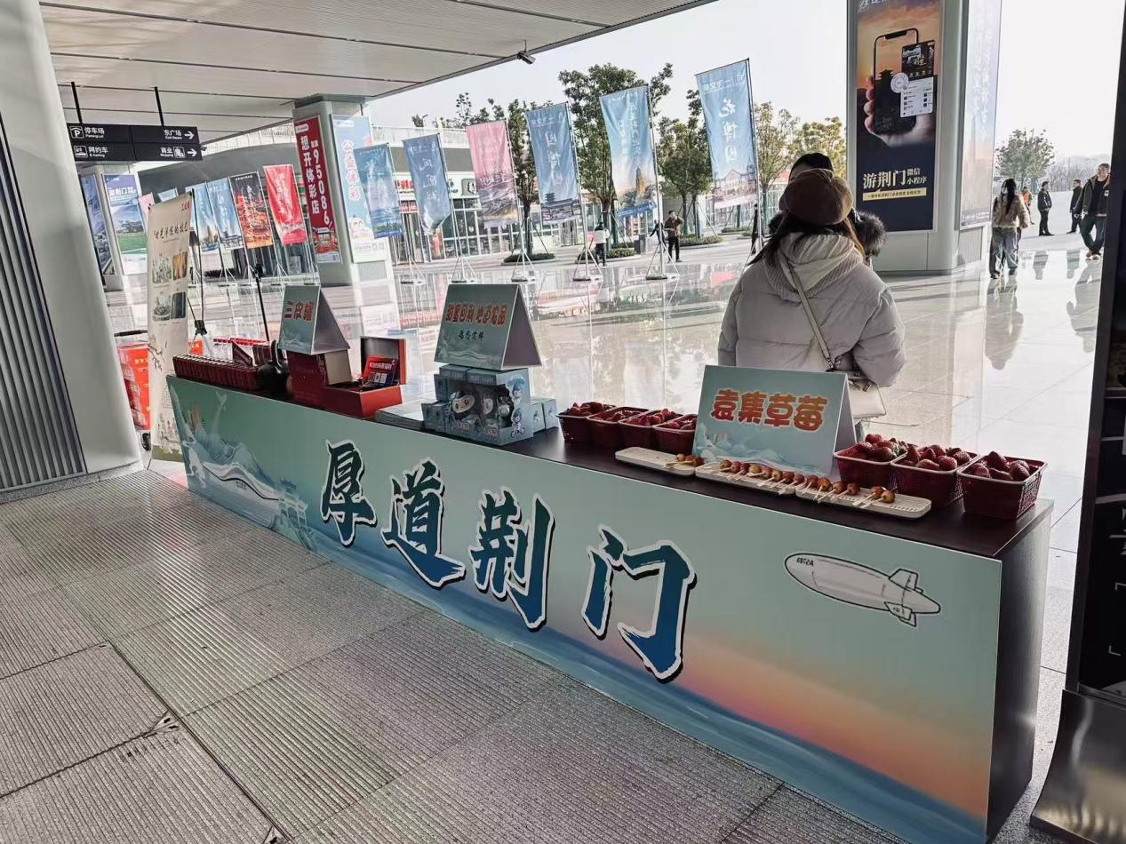荆门西站设置了“厚道荆门”特产展示区域。荆门九派通融媒体中心 供图
