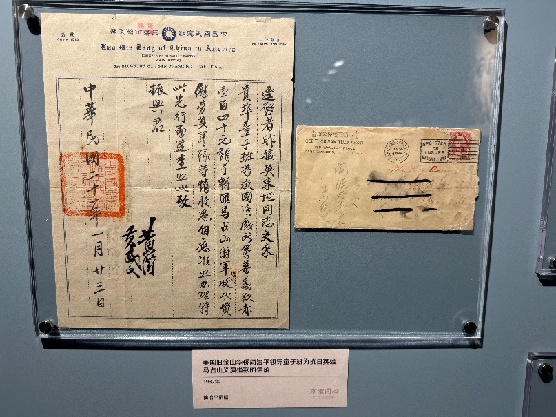 1932年,旧金山华侨简治平领导童子班为抗日英雄马占山义演捐款的信函
