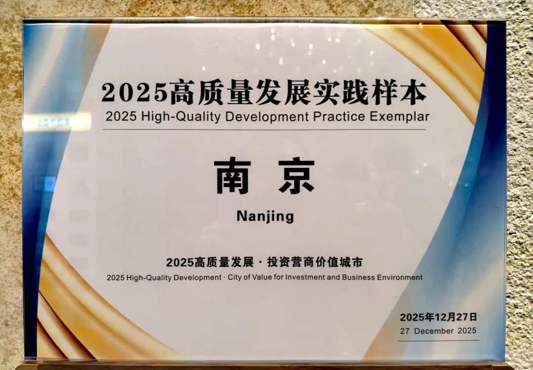 继7月荣获“2025投资吸引力城市”称号后,南京再获殊荣,获得“2025高质量发展•投资营商价值城市”荣誉称号。