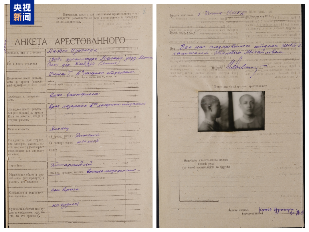 该史料原件藏于俄罗斯联邦安全局外贝加尔边疆区分局,由普希金科学图书馆申请解密获取后,于今年2月将影印版捐赠到黑龙江哈尔滨侵华日军第七三一部队罪证陈列馆,主要记载了加藤恒则1948年2月被苏联逮捕后亲笔书写的供述材料,包含被捕者档案、个人信息登记表及详细罪行陈述三部分内容,由俄文和日文材料组成,日文是亲笔笔供,俄文是翻译稿。