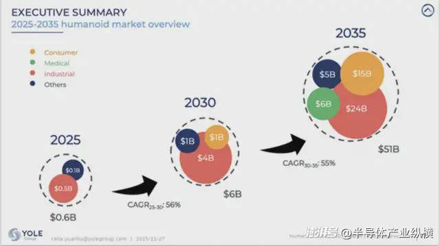 人形机器人虽然目前仍属小众市场,但潜力巨大,未来五年将是关键增长期,复合年增长率将达到56%。