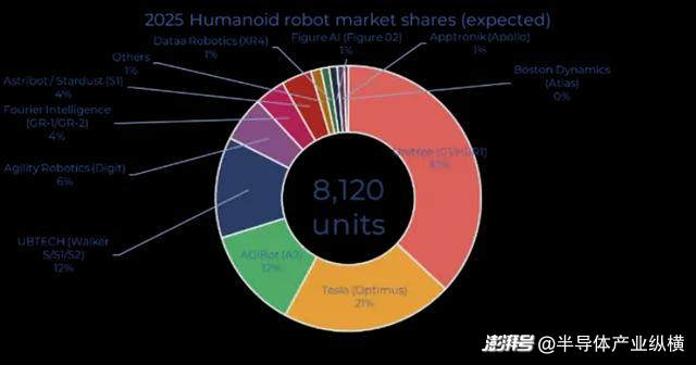 市场瞬息万变,《2026年人形机器人报告》中提及的人形机器人制造商超过60家。其中,超过一半是中国企业。因此,排名前五的厂商中有三家是中国企业也就不足为奇了。而中国企业宇树科技(Unitree)以37%的市场份额领跑市场。
