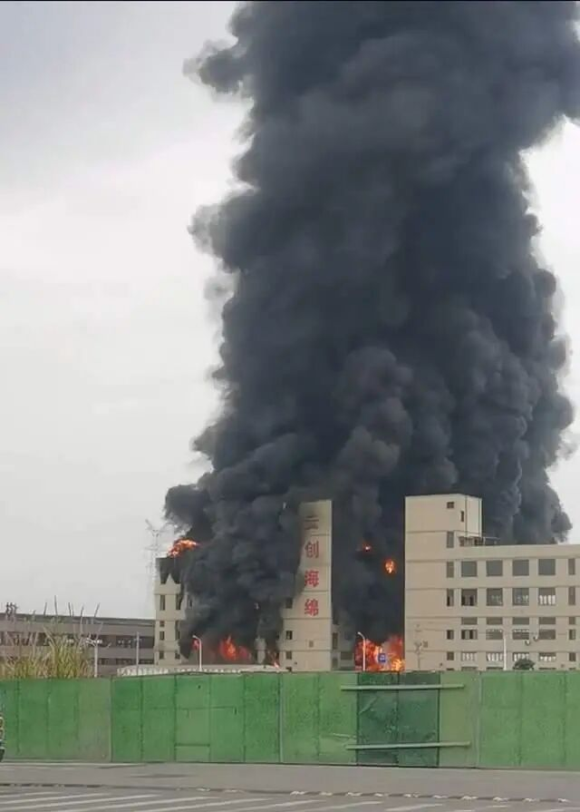 燃烧近5小时!海绵公司突发大火,浓烟滚滚→