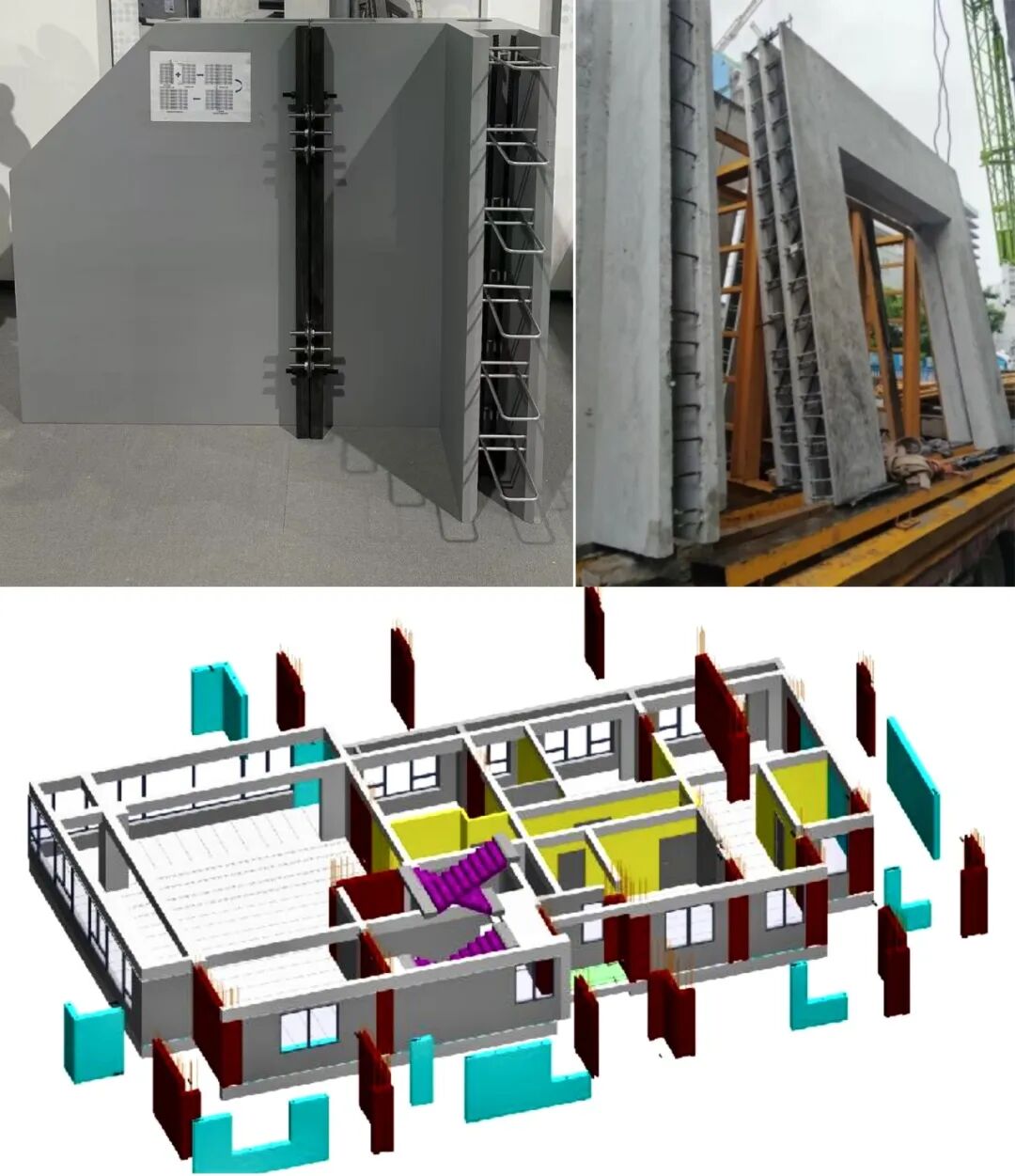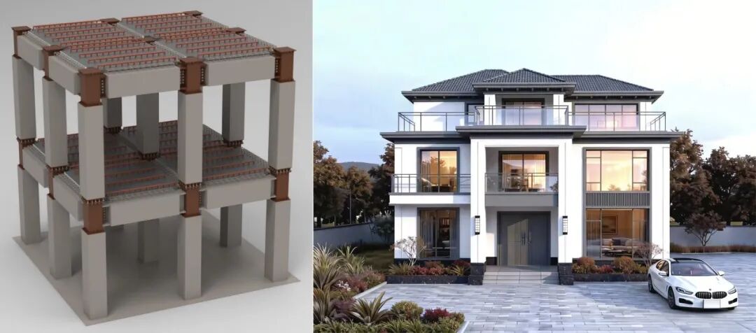 装配式钢节点混合框架房屋体系适用于大空间别墅、农房、公寓、宿舍等。其在预制混凝土梁、柱连接节点处设置钢连接件,现场采用钢结构连接方式实现预制构件连接,相比传统PC结构可实现干式连接与免支撑施工,有效缩短施工周期、降低措施费用;相比纯钢结构,无需进行防腐防火处理,综合成本显著降低,搭配建研悠崮钢筋桁架楼承板、预应力叠合板、保温装饰一体化外墙板及新型隔墙,实现工程提质降本增效。