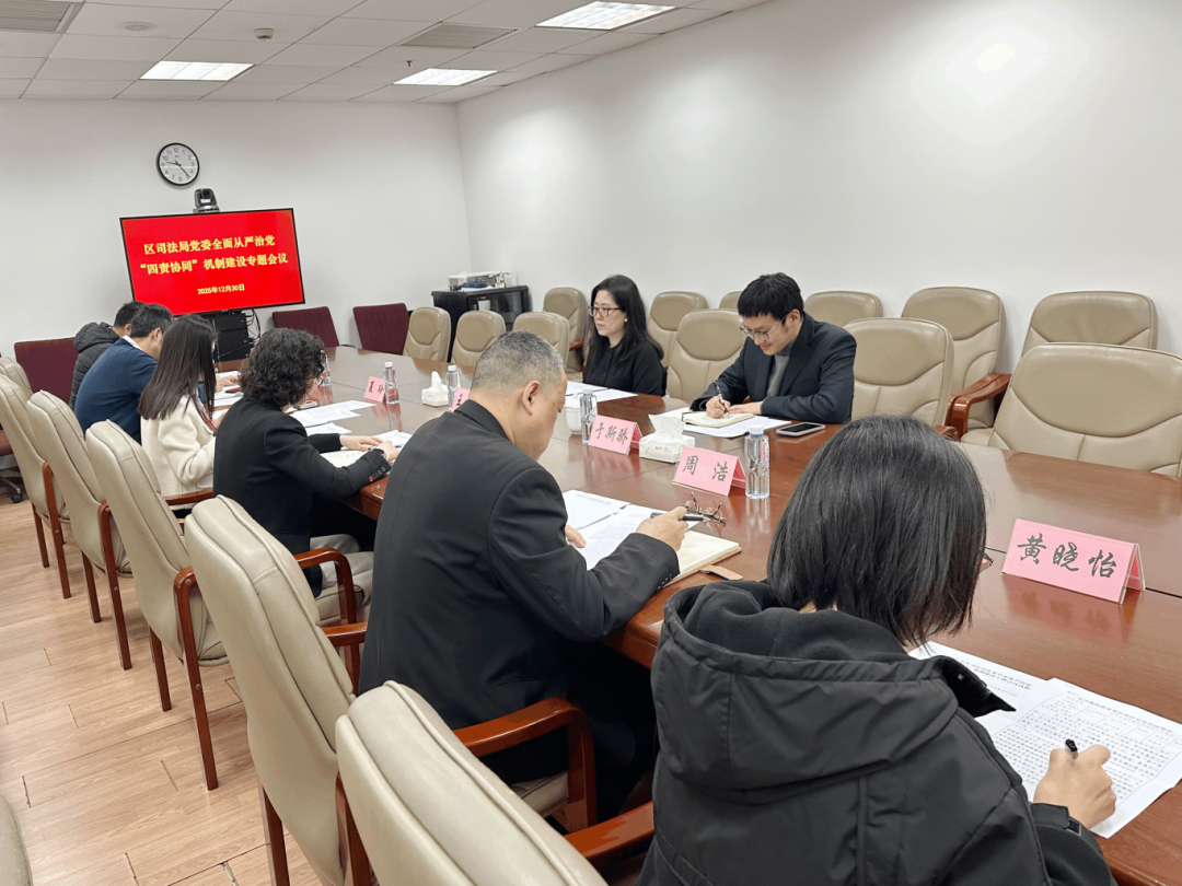 12月30日上午,区司法局党委召开2025年全面从严治党“四责协同”机制建设专题会议。会议由区司法局党委书记、局长王琳主持,局班子领导干部、基层延伸单位党组织负责同志参加会议。区纪委监委第二派驻纪检监察组副组长于斯骄列席会议。