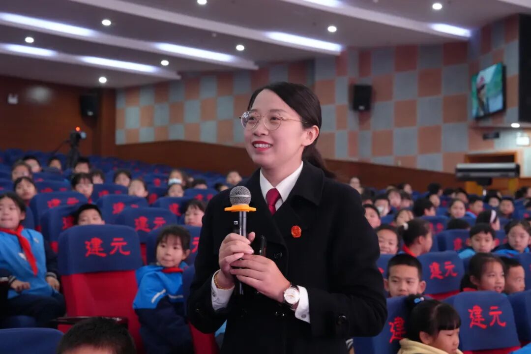 “哪些部位是身体的‘小秘密’?”“遇到不舒服的触碰该怎么办?”高喜朝法官以《法治阳光,照亮成长——给孩子的身体安全指南》为主题,通过情景模拟、互动问答、动画演示等符合儿童认知特点的方式,用亲切的语言向孩子们讲解如何识别危险、拒绝侵害、寻求帮助。课程内容贴近生活实际,现场600名学生积极参与互动,各分会场学生也通过直播平台实时参与学习。