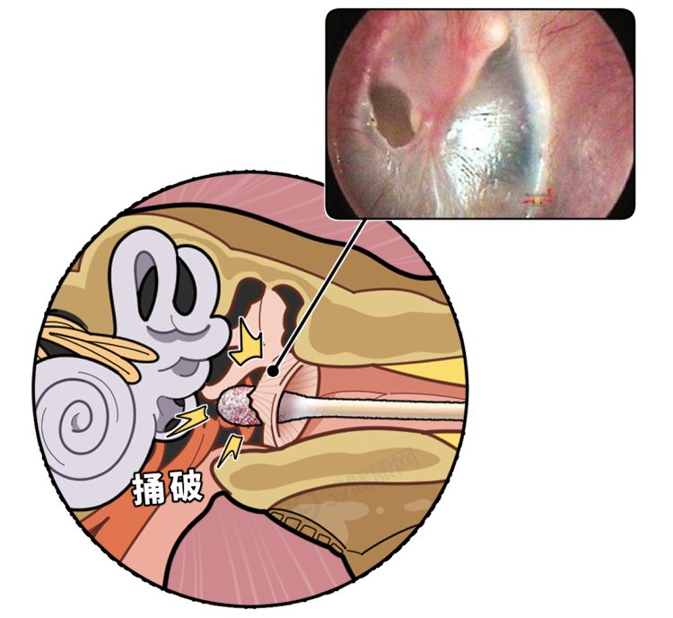 一旦鼓膜穿孔,除了剧烈疼痛、出血,还会导致听力下降、耳朵漏风感。如果穿孔较大无法自愈,通常需要手术进行修补,严重时还可能造成不可逆的耳聋!
